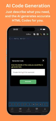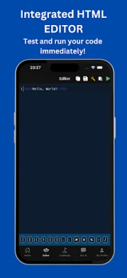 AI-Powered Learning: The app uses AI to guide you through each lesson, offering real-time feedback and suggestions, making learning HTML easier and faster. With the integrated HTML Editor and HTML IDE, you can write, test, and run HTML code directly in the app using the built-in IDE.