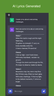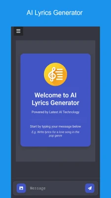 "AI Lyrics Generator" is your ultimate tool for crafting unique and memorable lyrics. Whether you're a songwriter, rapper, or simply someone looking to explore creativity, this app enables you to generate lyrics in seconds. Choose from various tones, styles, and lengths to match your musical vision, and let AI help you create lyrics that captivate and resonate.