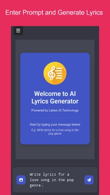 Easy-to-Use Interface: Simply enter a theme, and the app will create engaging lyrics.