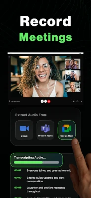 Professionals can rely on AI meeting notes and AI meeting note taker free features to track discussions. The meeting app supports note meeting, note ai, and minutes ai free tools, helping teams stay productive. Compared to Descript AI, Fireflies AI Notetaker, or Transkriptor, this app combines AI transcribe, transcription, and record and transcribe in one platform.