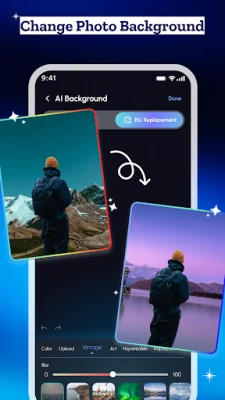 Automatically detect and remove backgrounds. Swap scenes with a single tap—from fantasy landscapes to professional backdrops for resumes or business cards.