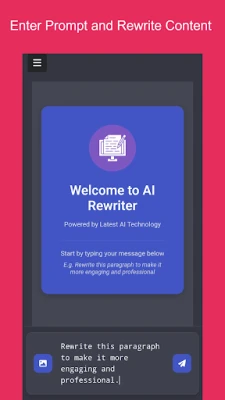"AI Rewriter" will save you time and energy converting written content, and complexities of writing. You can use this app to rephrase a sentence, clarify a statement, and add more creativity to it. It is useful for all blog writers, students, employees, or anybody who wishes to edit their way of writing but still stays in control of the writing.