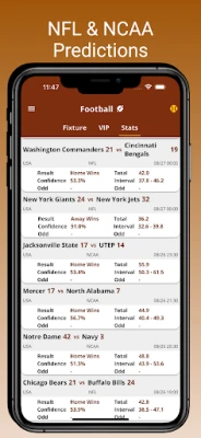 • NFL (National Football League) game insights: result and total score style prediction support.