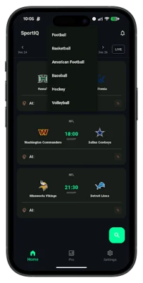 SportIQ24 delivers advanced AI sports predictions for football, NBA, NFL, MLB, NHL, volleyball, and more. Get today match predictions, win probabilities, betting insights, and deep statistical analysis powered by smart machine learning algorithms.