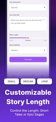The story length slider is designed to help you control the length of the story you want to generate. You get three options here as well: