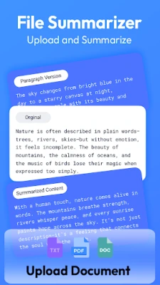 Introducing AI Summarizer – your all-in-one content summarization tool designed to make text creation smarter, faster, and more human. Whether you need to summarize articles, rewrite paragraphs, humanize AI text, or extract key points from audio, images, or videos - this powerful AI Summarizer app does it all with just one tap.