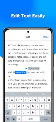 AI Transcribe is an easy-to-use voice recording and auto-transcribing app. You can record lectures, interviews, meetings, personal notes, ideas, or songs, and get auto-transcribed text with advanced AI technology.