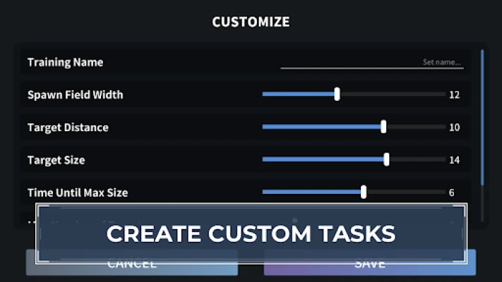 There are over 30 training tasks to choose from, which will all help you practice different areas of your aiming skill. All of the tasks are highly customizable - from the size and position of the target to the game speed.
