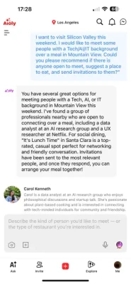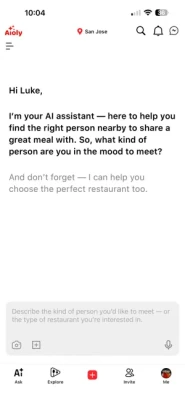 Aioly uses AI to connect you with someone nearby for a meal—whether you're at home, hotel, restaurant, conference, exhibition, airport, train station, or shopping mall.