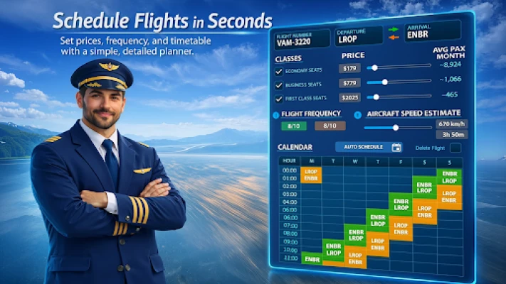 Become the CEO of your own airline in this realistic airline management tycoon. Build routes, expand hubs, manage aircraft and crew, and grow from regional flights to a global aviation empire.