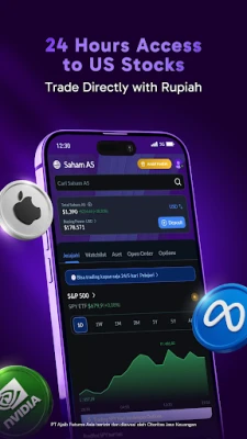 Buy and sell shares from the Dow Jones, S&P 500, and Nasdaq indexes — including Apple, Tesla, Nvidia, Google, Netflix, and more — starting from just $1, directly in Rupiah!