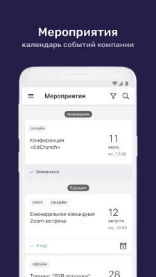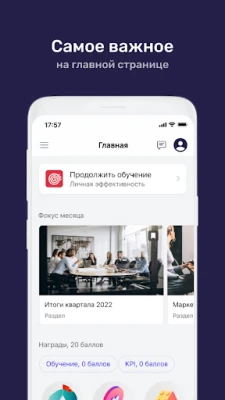 Внутри вы найдете: ⁃ Брифы, обучение и тестирование. Онлайн и офлайн ⁃ Необходимые для работы материалы и документы ⁃ Календарь корпоративных мероприятий с возможностью подать заявку на участие ⁃ Лента и обсуждение новостей команды и компании ⁃ Рейтинг с учетом прогресса в обучении и бизнес-результатов ⁃ Вы руководитель? Публикуйте и обсуждайте новости команды прямо из приложения, выдавайте награды и проверяйте прогресс обучения