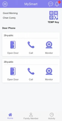 MySmart is Akuvox’s smart security and intercom service for buildings. It allows residents to see and talk to visitors, open doors, monitor building entrances and issue virtual keys from their smartphones via Akuvox doorphones installed at property entrance.