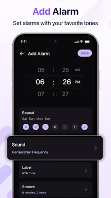 - Customize with Repeat, Sound, Snooze, and Labels.