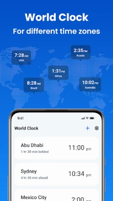 The alarm clock automatically shows the local time and weather, but with the "World Clock" feature, you can check the current time in any city worldwide. It includes a Time Zone Converter to easily see the time difference between locations. For an interactive experience, you can customize the World Clock settings.