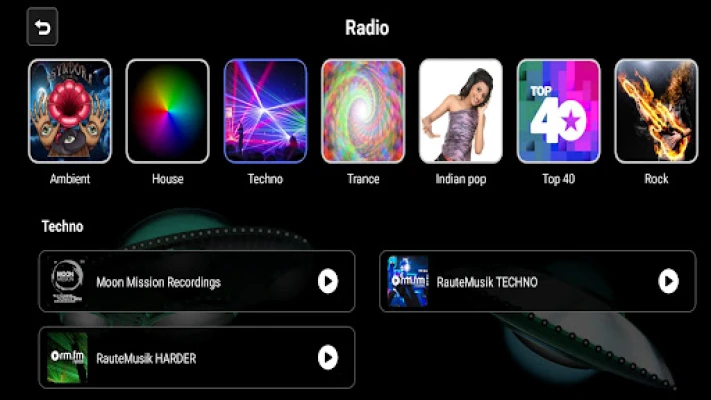Play your music with any audio player app. Then switch to this app. It will then visualize the music. Many radio channels are included. A player for your music files is also included.