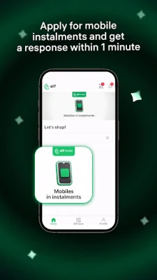 Buy mobile phones in instalments from partner stores. Choose your model, apply in the app, get a response within 1 minute, and track payments easily.