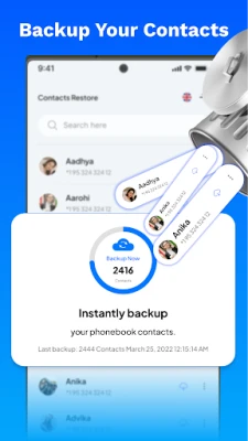With just one tap, you can perform a backup all contacts to Google Drive safely and restore them whenever you need.