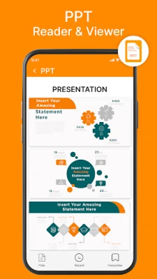 With the PowerPoint File opener, you can see the presentation of the PPT/PPtx slides and preparation for the presentation of the document saver files.