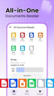 All Document Reader & Viewer is a fast, reliable, and lightweight document reader app that allows you to open, view, and manage all your office documents in one place. This all-in-one document reader is designed for users who want a smooth experience while reading PDF files, Word documents, Excel sheets, PowerPoint presentations, and text files without switching between multiple apps.