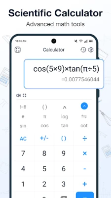 Scientific Calculator: Unlock advanced mathematical functions such as trigonometric calculations (sin, cos, tan), exponentiation, and percentage calculations. Ideal for students and professionals who need a smart calculator for more complex problems.