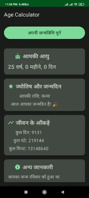 * **Age Calculator:** Find your exact age in years, months, and days. Discover your zodiac sign, the day you were born, and the countdown to your next birthday.