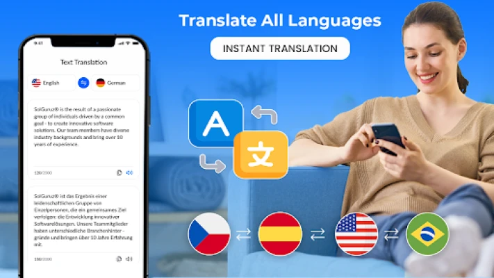 Introducing All Language - Translator App. Speak any language, anywhere. Translate instantly between 100+ languages. Your one-stop solution for seamless communication across languages. Whether you're a seasoned traveller, a language enthusiast, or simply navigating multicultural interactions, Text Translator empowers you to connect effortlessly.