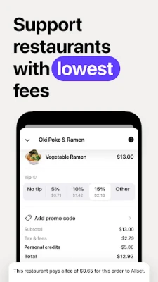 We offer our restaurant partners one of the lowest fees on the market, along with the commission free option. You can view the restaurant’s fee per each order at the checkout. Be sure that what you pay through Allset is going directly to restaurants.