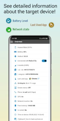 The app provides the ability to manage the account and target devices on which AllTracker is installed.