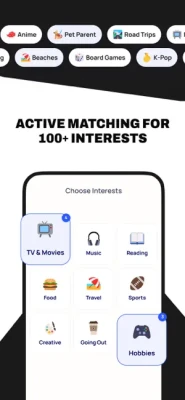 • 50+ interests from foodie adventures to late-night gamers—find your crew fast.
