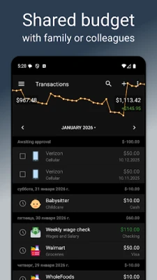 Tracking debts and credits. You can borrow and lend money, and it will be displayed in the program. To repay debts, you can use any account and any currency.