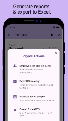 • Export full payroll reports, employee lists, and salary summaries to Excel (.xlsx) in one tap.