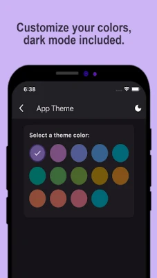 • Personalize theme colors and enable dark mode.