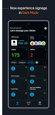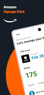 The Amazon Signage mobile app makes setup and management easy: - Configure multiple Signage Sticks in minutes - Install leading Content Management Software (CMS) with ease - Monitor your Signage Sticks from a centralized dashboard - Create custom profiles to simplify setup - Organize Signage Sticks by location - New! Compact Mode shows more Signage Sticks at a glance - New! Dark Mode for easier viewing in low light