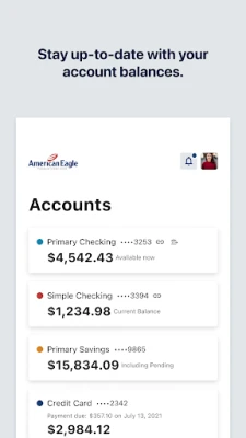Making your financial life easier is our goal. Bank securely with the American Eagle FCU Mobile App: Apply for a loan, deposit checks, pay bills, manage your accounts, monitor your credit score, budget, and track spending on the go – all in one app.
