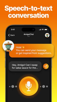 Welcome to the AI world! Meet AmigoChat, your trusty AI virtual assistant and AI chat companion. Improve lyrics, choose any character and chat with Amigo! Whether you're a business person getting ready for a presentation or copywriter seeking a clever turn of phrase, the AI chat app is right for you.