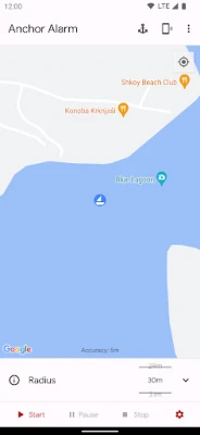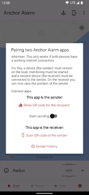 Set the radius and click on Start to start the anchor alarm.