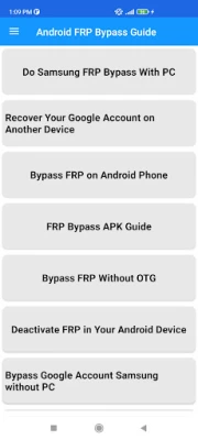 Guide For Android FRP Bypass and ALL Sim Mobile Reset code Guide.Its only guide application.We hope you find the app useful and help. If you like this app, give it 5 stars.