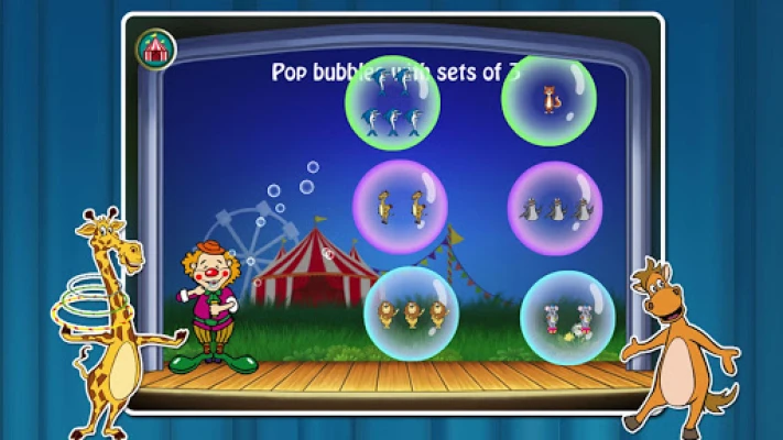 Clown loves to blow bubbles! Pop all the bubbles that have the right amount of animals inside before the time runs out!