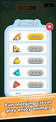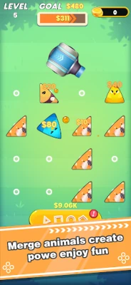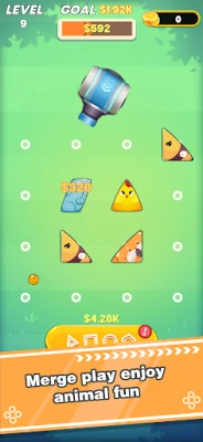 Discover charming animal blocks shaped like squares, triangles, and circles – from elephants to chickens! Match two identical blocks to merge them into majestic upgraded creatures. Watch your collection evolve as you unlock rare species!