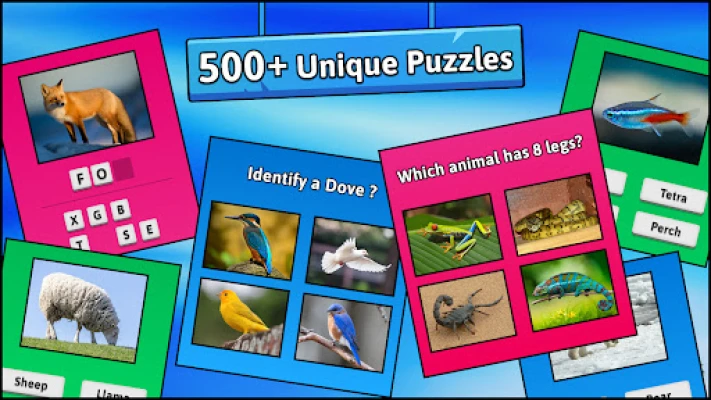 ⭐ CHALLENGING - Starts off easy but gets challenging fast with 400+ animals to guess and 200+ trivia quiz questions.