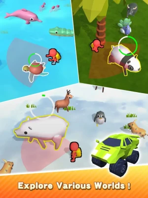 【Adventures Await】Travel the world and establish your Animal Land in various locations. From lush forests to sparkling seas, deserts, and safaris, different stages and animals await your discovery. Explore each world and create your unique animal kingdom. Occasionally, embark on high-speed adventures in your 4WD car through stunning landscapes.