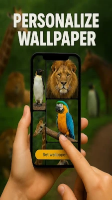Choose from stunning high-definition images of wild, farm, and cartoon animals to set as your phone’s wallpaper.