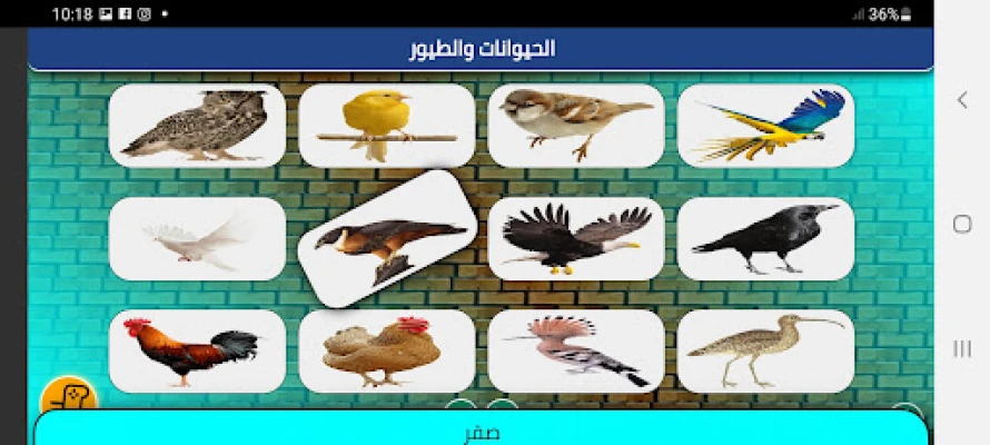 The memory game is an inverted cards game consisting of several levels of varying difficulty to strengthen the player's memory. It is suitable for all works, not just for children. The painter is a built-in game that appears when you click for a few seconds on a picture of an animal, and its picture appears, and a white space for drawing appears, with the ability to change the color of the pen and the size of the pen. Also, for the bird hunter, it is a built-in game that you can play to increase the number of points in the application.