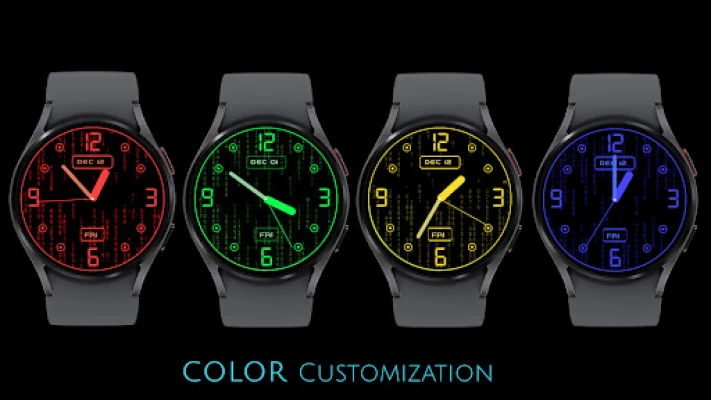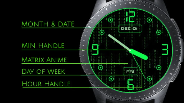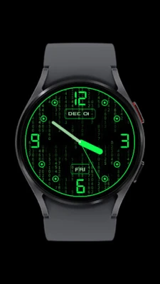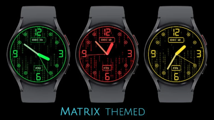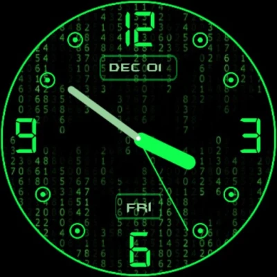 Animated Matrix style watch face theme is here to glow up your watch screens with a stunning multi-colour matrix animations. Turn your watch face into a flowing stream of digits with analog watch, also displays day of the week, month and day of the month.