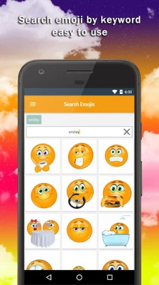 Find Different types of Emoticons in app like Love Smileys, Funny Smileys, Sad Smileys, Angry Smileys, Happy & Crazy Smiley. Share your mood or emotions with your friends by sending emoji.