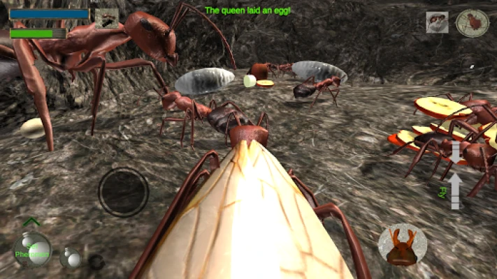 Search for food resources in order to feed the ant queen ant and the larvae to let them pupate and transform into a new ant. Once you found a food source you can create pheromone trails to attract other ants or just command the ants directly to follow you.
