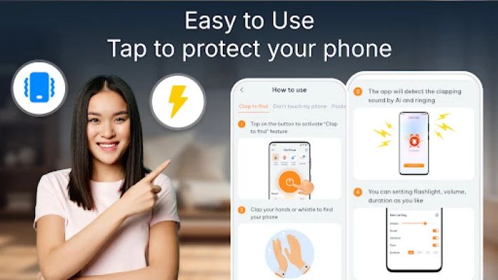 Clap to Find Phone: Lost your phone around the house? Just find phone by clap, and your phone will ring loudly so you can find it fast!
