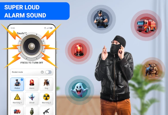 - Easily adjust the volume and duration of the sounds. Select the sound you want: Police sirens, gunshots, alarm clock, baby, church bell, car horn...