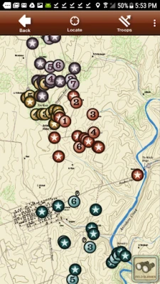 Click on our "virtual signs" to access a wealth of information related to the very spot where you are standing. Onboard historian videos, audio accounts of soldiers from the battle, photos, orders of battle, chronologies, key facts, and more are just a click away. Our detailed maps allow you to locate just where certain Union and Confederate units were during different phases of the battle. Never has so much valuable information been made available in such a portable device.
